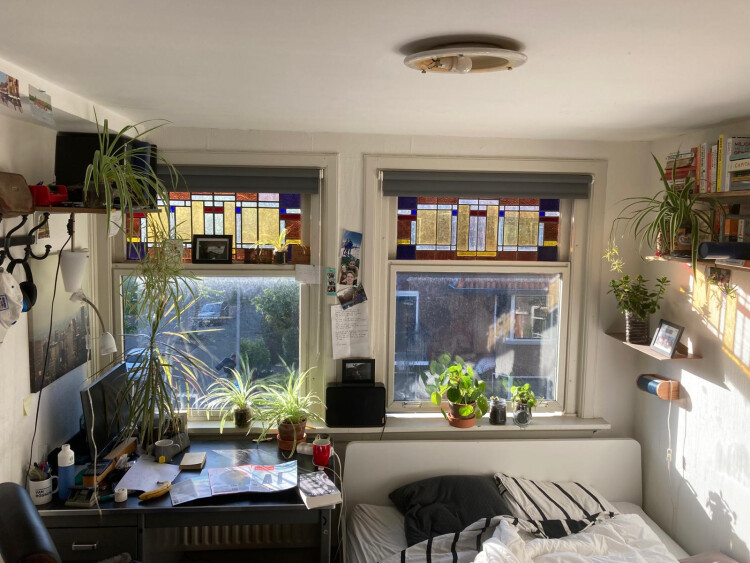 De kamer is 10 m2 groot en kost je ongeveer €350 per maand incl. De kamer beschikt over een een grote open kast en wasbak. De kamer heeft ramen op het Noorden. (zie foto’s en het plattegrondje). De voornaamste meubels zijn inbegrepen bij de kamer, hier krijg je meer info over tijdens de instemming. Het huis is uitgerust met tuin, een grote GR, Netflix etc.. Je komt te wonen op 5 minuten fietsen van het centrum en 10 min van de TU.