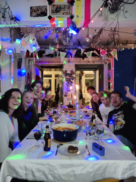 We zijn een super gezellig en actief huis van 8 en bestaan met jou erbij uit 4 vrouwen en 4 mannen. We hebben voetballers, turners, tennissers, zwemmers, rugbyers, serie kijkers en bierzuipers. Verder zijn we actief bij verschillende gezelligheid-/sport-/studieverenigingen. We ontbijten en dineren vaak samen en er zijn meestal wel mensen thuis om gezellig een spelletje mee te doen, een film mee te kijken of een drankje te doen aan onze eigen bar! Daarnaast gaan we elk jaar op huisweekend, vieren we kerst met een uitgebreid kerstdiner, hebben we standaard huisavonden, gaan we spontaan op stap, op tour des parents en geven we huisfeestjes. Super leuk dus!