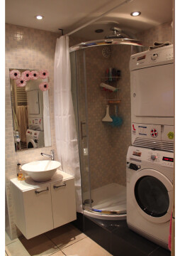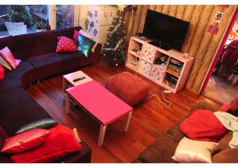 Samen met 8 andere meisjes woon ik in een studentenhuis met een gemeenschappelijke woonkamer, eetkamer, keuken en dakterras. In het huis bevinden zich 2 badkamers.