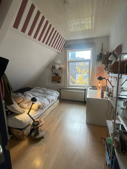 De kamer is erg ruim en volledig gemeubileerd. Voorzien van 2 kasten waar kleren in kunnen. Je hebt toegang tot gedeelde badkamer, keuken en woonkamer.