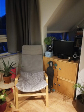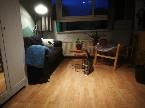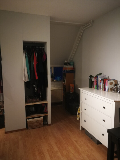 26 m2 met eigen zithoek, eettafel en bureau. Je deelt de badkamer en keuken met 1 vrouwelijk huisgenootje en onze kat Moeky.