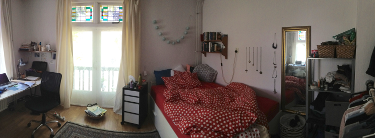 You will be accompanied by 6 amazing female roommates, and sharing a living room, kitchen and bathroom. The room I’m renting is about 20 m2 with a tiny balcony.
